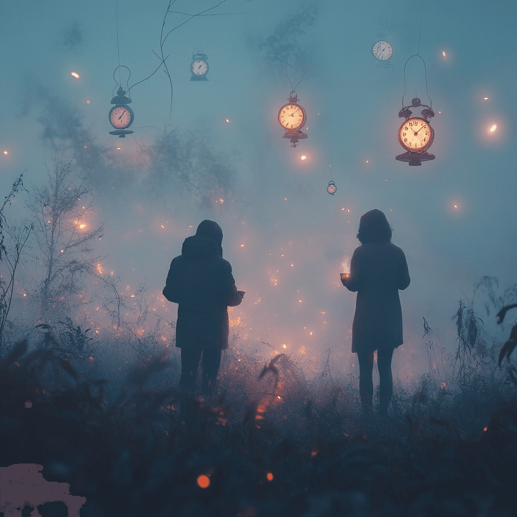 (Zaman kavramını algılamaya çalışan iki kişi, bu fotoğraf yapay zeka ile oluşturuldu.)