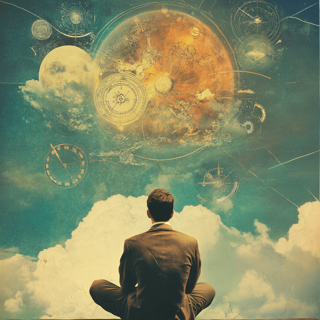 (Metafiziksel düşüncelere dalmış bir adam, bu fotoğraf yapay zeka ile oluşturuldu.)