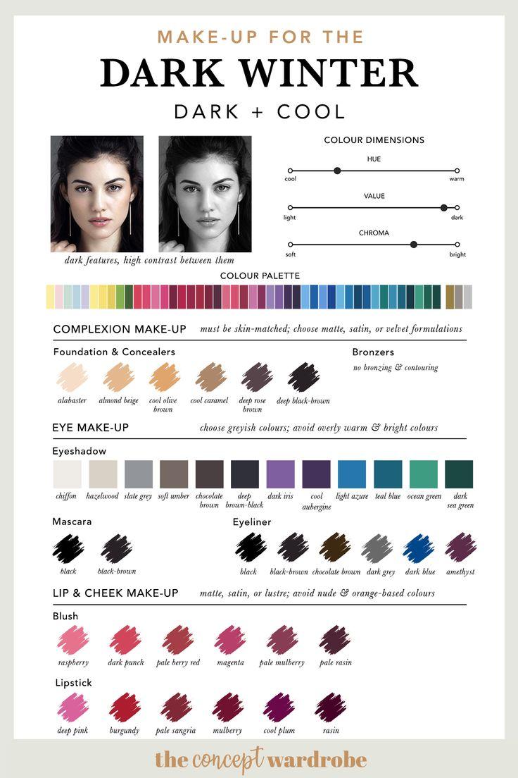 Soluk veya yüzüne oturmayan renkler yerine koyu kahve, siyah ve küllü kahve önerilmiş. Saç kısmı her zaman basittir, gelelim kafa karıştırıcı kısımlara… Kıyafet ve makyaj malzemesi. Sizi cildinizle birleştirecek kıyafet renkleri ise zengin, doygun ve koyu renkler, siyah, koyu gri, zümrüt yeşili, gece mavisi, bordo, saf beyaz olmuş. Koyu ve soğuk cildinizin capcanlı renkleri mis gibi de taşıyacağını anlamışsınızdır herhalde. Bu anlaşıldıysa o zaman yine aynı şekilde capcanlı makyajların da uyumlu olacağını söylemeliyim, bunun için de soğuk alt tonlu ve koyu ten rengine uygun fondöten, soğuk erik tonları, koyu pembe allık, bordo, koyu kırmızı, erik tonları ruj ve koyu mor, lacivert, metalik gri tonları far kullanmalısın! İşte kusursuz görüntünü oluşturacak bu renkler.