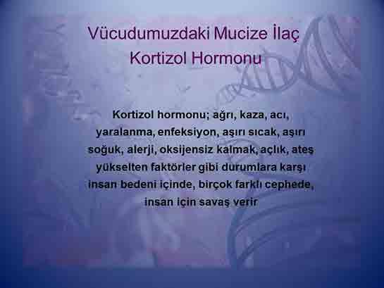 Hayat, hormonlar sayesinde devam eder. Onlarda bir dengesizlik olduğunda hayat olumsuz etkilenir. Yaşamdaki en önemli hormon ise kortizoldür. Stres hormonu olarak nam salan bu hormon, vücudun strese verdiği tepkiyi düzenlediği için bu ad ile bilinir.