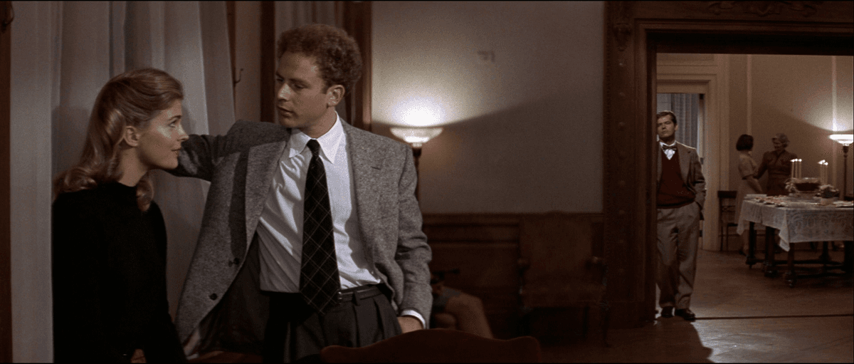 Both characters’ search for better and better women and boasting about their achievements in that regard can be interpreted as an inherent emotional and sexual insecurity—Jonathan’s being less evident while Sandy’s insecurity is manifest. This sexual back-and-forth derring-do is the main cause of their depressed and melancholic lives that they are leading at the ending sequences of the film, presumably both characters are now in their forties and struggling with mid-life crises as well. At some point, the bravado of Jonathan withers away as he is no longer virile and potent in bed, struggling to maintain his manhood and former prowess as he faces erection problems.