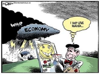 Uluslararası ilişkilerde realizm esas olarak güvenlik ve maddi güçle ilgilenirken liberalizm daha çok ekonomik karşılıklı bağımlılık ve devletin iç politika faktörleriyle ilgilenir.