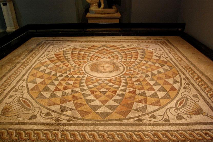 (The head of Medusa in the center of a floor mosaic. From the Lower City of Pergamon)