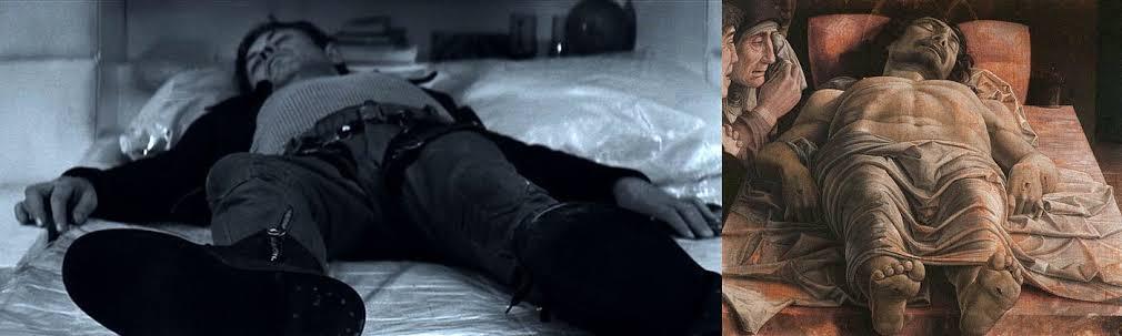 The Return filminde baba figürü yatakta uzanmaktadır. Tarkovski'nin Solaris'te benzer bir etki yaratmak için kullandığı Mantegna'nın 'Ölü İsa'ya Ağıt' tablosunun yeniden canlandırmasıdır. Huzurla uyumak.