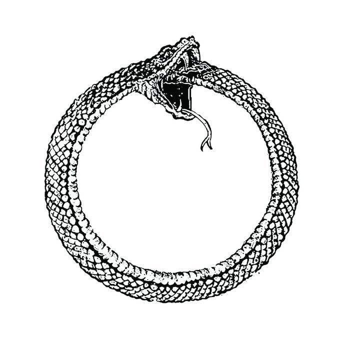 Another depiction of self-cannibalism is the infamous Ouroboros eating its tail to become and unbecome itself through and through, without a due date for meeting his true self. In this way, Ouroboros becomes another Sisyphus, only without arms to carry its infinite burden and always satiated by the meat of his own flesh.