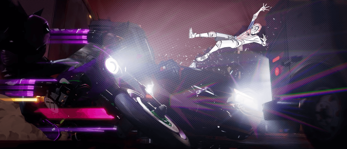 In most of the action scenes, traditional 2D motion techniques are used to convey the mood in which Miles’ is. The 2D cutaways, ‘’wipes’’ and ‘’smears’’ or the linework that appear on the screen in tandem with the characters’ actions, are manifestations of the action lines that would be hand-drawn in a given comic book. Some dramatic scenes only have line work and one color to further emphasize the comic book feeling and get the emotion right, as the screenshot below demonstrates. Tools previously abused in the animation world, such as motion blur and depth of field, are not utilized. The traditional animation frame rate is 24 fps per animation, meaning animators take or draw two photos for each piece of movement. While in Spider-Man Into the Spider-Verse plays at 24 frames per second, the characters are animated at 12 frames per second. This conscious animation choice highlights the 2D look and feel of the movie and provides it with its renowned style. The movie also stayed true to most of the concept art drawn before the animation process. The whole movie is highly stylized and compounded with textures such as hatching, halftones, motifs, and linework. Therefore, the scenes look like they are printed in ink. This quality provides the frames with an illustration-like feel.