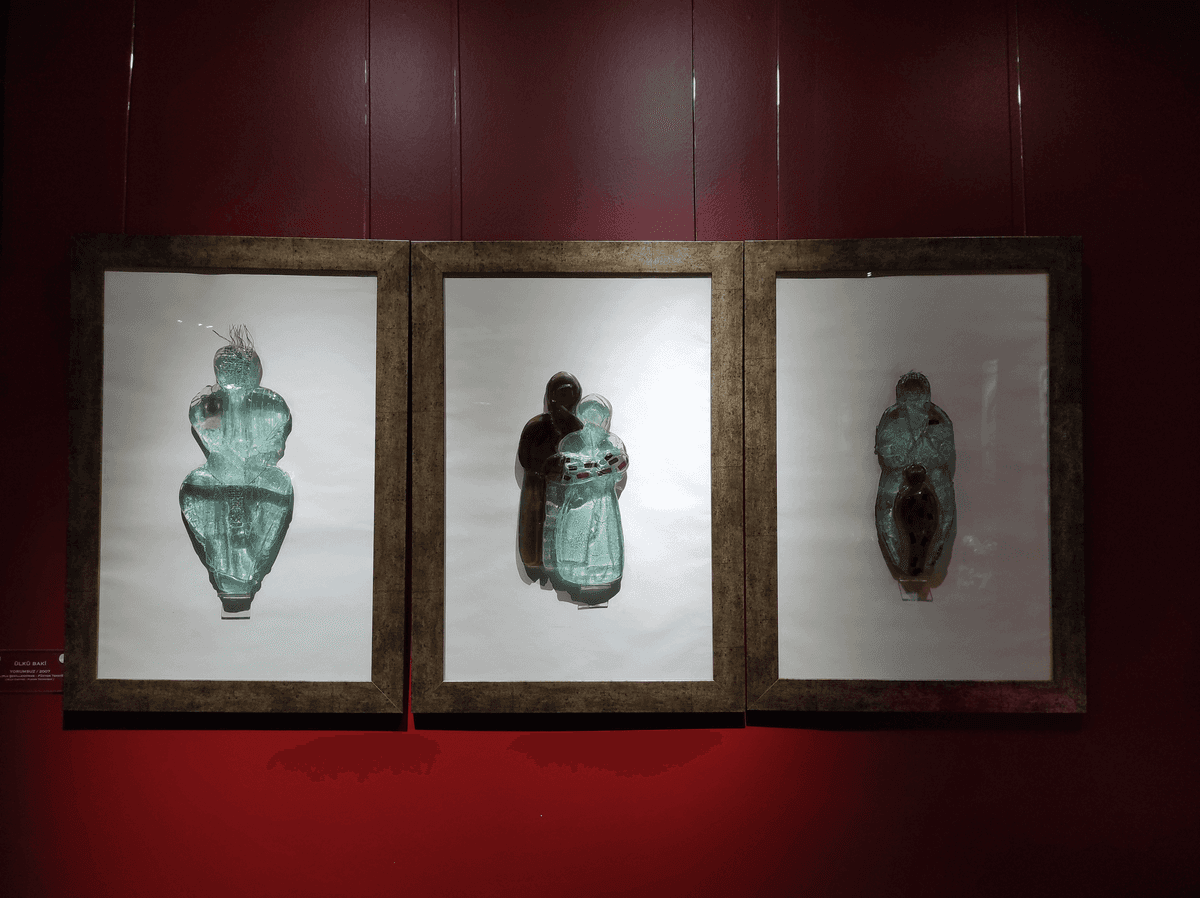 Son odamız ise hemen karşımızda bulunuyor. Burada daha ferah ve aydınlık bir ortam tercih edilmiş. Duvarlar beyaz ve zeminin krem rengiyle buluşması estetik ve sakin bir hava oluşturmuş. Duvarların beyaz olduğu gibi büstler de beyaz. Bu odadaki eserler de çok renkli ve cıvıl cıvıl. Buradaki eserler daha dağınık bir konumda ve daha büyük yapılar yer alıyor. Bu yüzden bu salondakiler daha çok dikkatinizi çekecek. Hem daha farklı hem de boyut olarak daha büyükler. Benim bu salonda ilk ve en çok dikkatimi çeken eser Aslıhan Taşkent’in Figürler eseri oldu.