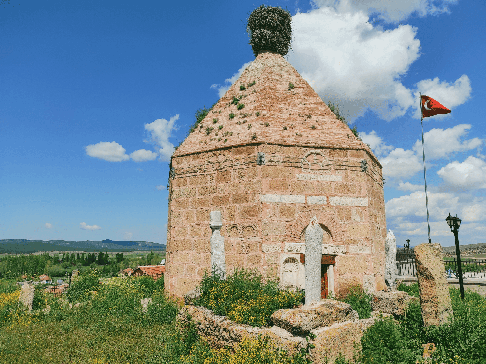 İlk durağımız Kümbet köyünde bulunan Himmet Baba Türbesi. Himmet Baba Türbesi 13. Yüzyılda yapılmış, Anadolu Selçuklu türbe mimarisi geleneğini taşıyan Eskişehir’deki tek örnektir. Dıştan sekizgen, içten ise daire şeklinde olan bir yapıdır. Girişinde Bizans dönemi mermerler, etrafında ise Osmanlı döneminden kitabeler bulunmaktadır. Aynı zamanda kümbetin üzerinde taş ustaları tarafından yapılmış çok güzel ve farklı figürler de vardır.