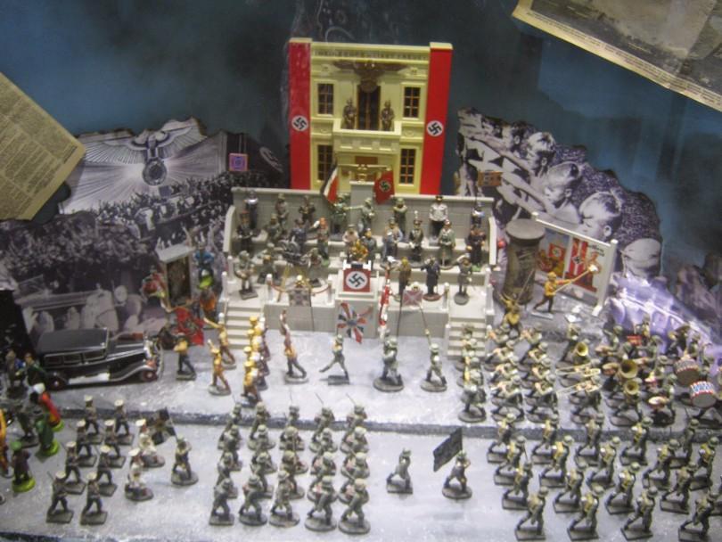 Cam arkasında, 2. Dünya savaşı sırasında çocuklara savaş duygusunu aşılamak için Almanya tarafından tasarlanmış askeri temalı oyuncaklar da sergileniyor.