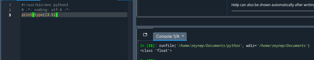 Bir önceki kısımda yer alan programda 13.5'in float tipinde olduğunu print() fonksiyonu sayesinde görebiliyoruz