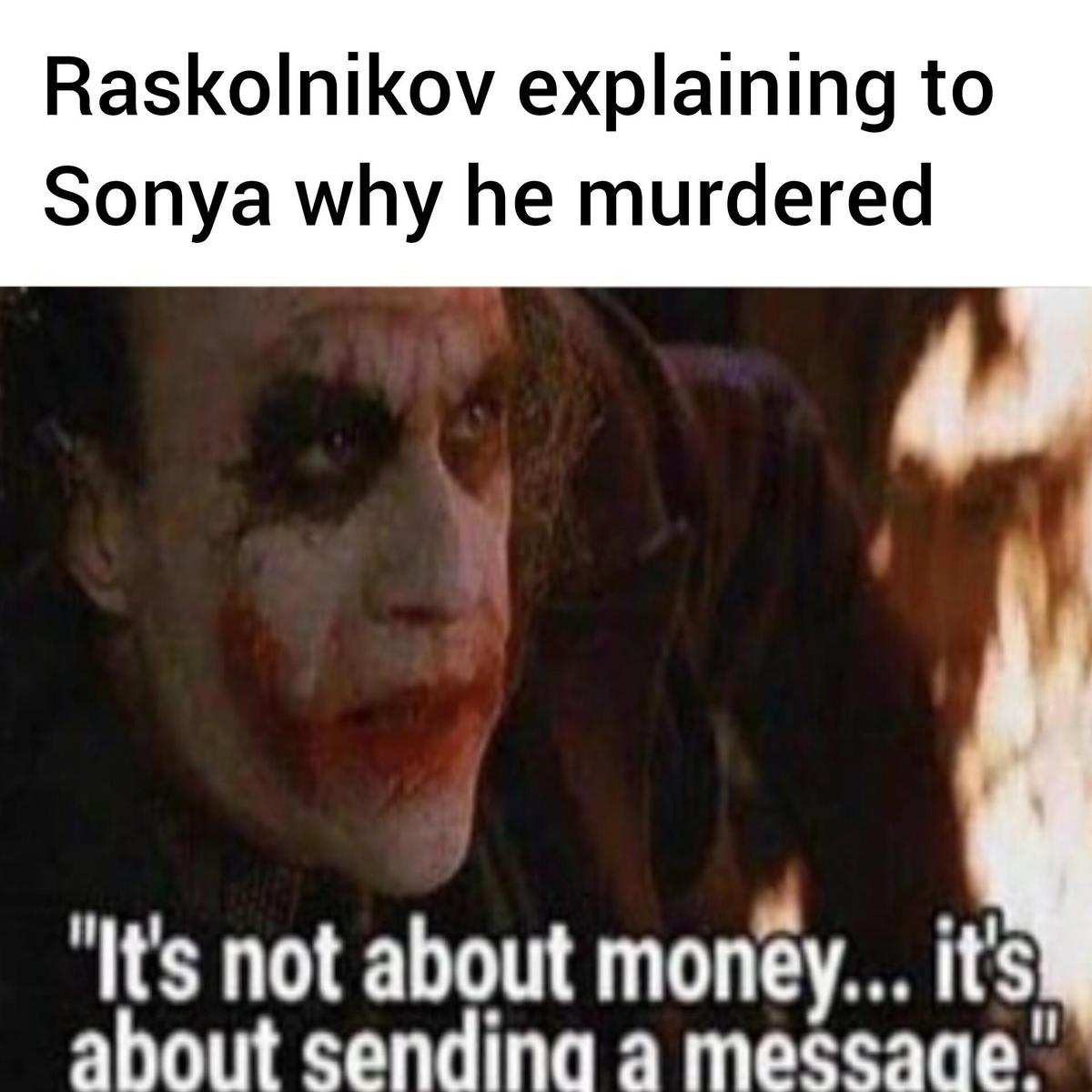 Dosto Bey, kızıl sakallarını omzunun arkasına atarak yazdığı bu kitabın yarısında psikolojik karanlığı ve bir insanın BETİ BENZİNİN ATMASINI ve TERLEMESİNİ ve ÇORBA İÇMESİNİ çok iyi anlattığını fark etmiş ve akşam çıkacağı kumar turunun heyecanıyla demiş ki DEVAM ARKADAŞLAR DEVAM! OLAY HİKAYE DEĞİL OLAY BENİM NE KADAR ZEKİ OLDUĞUM! AYRICA ELLERİME BAKIN BEN 800 SAYFA YAZABİLİYORUM!