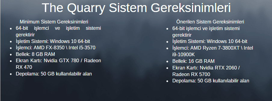 The Quarry oynayabilmeniz için sistem özellikleri güçlü bir bilgisayara ve 429 TL’ye ihtiyacınız var. Fiyat performans olarak değerlendirdiğimizde oyunu satın almak ne kadar mantıklı olur orası size kalmış.
