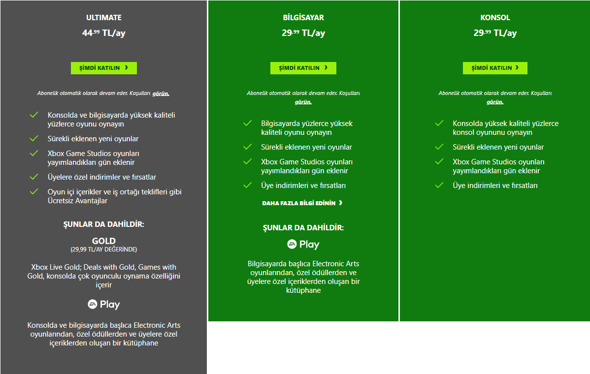 Xbox Game Pass size 3 farklı plan sunuyor. Bu planlar doğrultusunda oyunlarınızı isterseniz konsolunuzdan isterseniz bilgisayarınızdan oynayabilirsiniz.