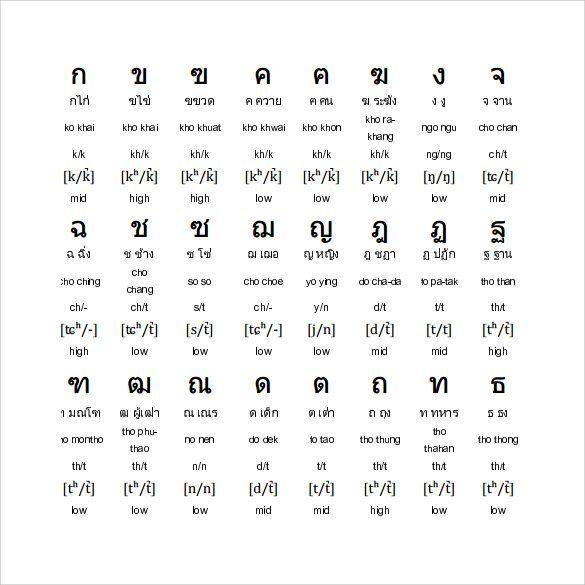 28 harften oluşan Tay alfabesi Tayland'ın resmi dilini olan Tayca'yı oluşturmaktadır. Harflerin birleşimiyle oluşan karakterlerle ise 72 harfe çıkmaktadır.