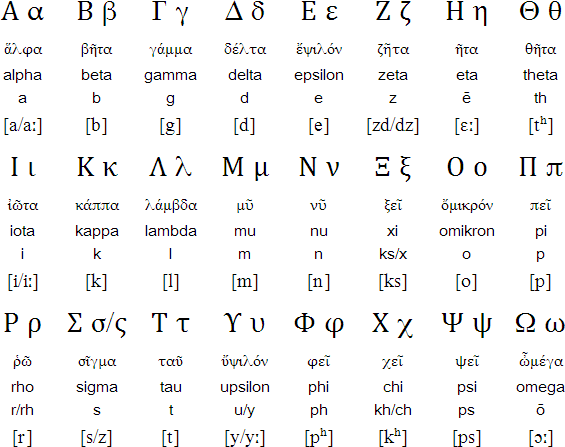 Yunan alfabesi toplan 24 harften oluşmaktadır. Yunanistan'ın tek resmi dili ve Kıbrıs Adası'nda konuşulan Türkçe'yle beraber konuşulan dildir. Dünya'da kullanılan en eski dillerden biridir.