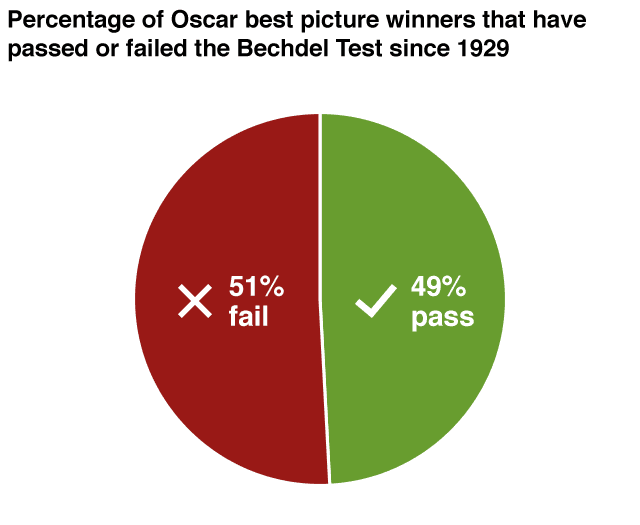 Bu oranlardan sonra filmlerin yarısından fazlasının Bechdel testini geçemediğini söylemek şaşırtıcı olmaz.