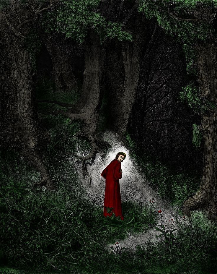 Eser, “karanlık bir ormanda” başlar. Bu orman, yüzeyde bir mekân gibi görünse de, aslında ruhsal bir krizin, insanın iç dünyasındaki kayboluşun sembolüdür. Dante, “ömrünün ortasında” kendini bu ormanda bulur; bu ifade hem bireysel hem de evrensel bir anlam taşır. İnsan, yaşamın ortasında, anlamın karanlığında yönünü kaybettiğinde kendi cehennemine düşer. Orman, günahın, korkunun ve bilgisizliğin temsilidir; oradan çıkmak ise ancak bilgiyle, inançla ve rehberlikle mümkündür. Bu noktada Dante’nin karşısına üç hayvan çıkar: pars, aslan ve dişi kurt. Bu hayvanlar, Orta Çağ ahlak sistemine göre üç temel tutkuyu şehvet, gurur ve açgözlülüğü temsil eder. Dante’nin onlarla karşılaşması, insanın kendi içsel düşmanlarıyla yüzleşmesidir.