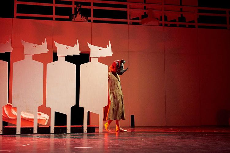 In the play, society gives up its personal perspectives and adopts the imposed ideology. So, Ionesco might point out a harsh political reference. On the other hand, society makes Bérenger weak and guilty because he does not join the rhinoceroses’ group and he belongs to the minority.
