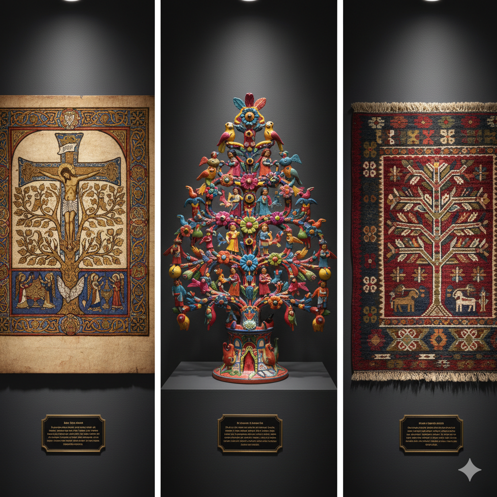 Geleneksel ve halk sanatlarında, Anadolu kilimlerinden, Hint kumaşlarına, İskandinav motiflerine kadar sayısız yerde bu sembol, yerel kültürün renk ve dokusunu taşır. Hayat Ağacı’nın her bir örneği doğa ve yaşam döngüsüyle kurduğu ilişkiyi gözler önüne serer.