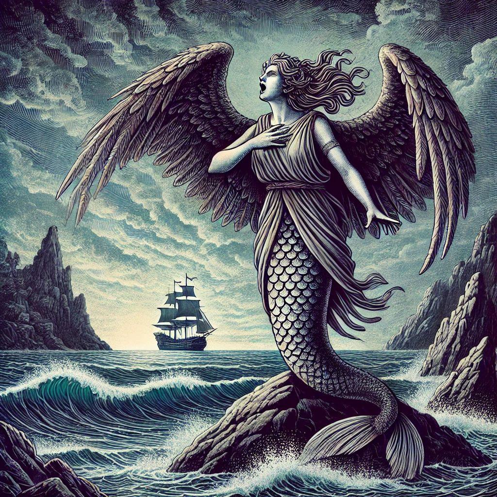 Sirenler; Yunan mitolojisinde denizcileri güzellikleriyle ve güzel şarkılarıyla kandıran deniz yaratıkları olarak bilinir. Sirenlerin güzelliğine ve güzel seslerinin büyüsüne kapılan denizciler rotolarını karaya çevirmiş ve sirenlere yem olmuşlardır. Deniz kızlarından farklı olarak sirenler iki kuyrukludur.