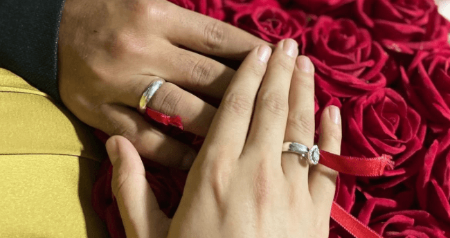 Muhtemelen bir heyecanla gidip seçilmiş bu çift yüzük; kırmızı bir kurdeleyle bağlanıp kesilmesinin ardından, ikisinden bir parça olacak çocuklarıyla kuracakları yepyeni bir hayatın da ilk adımını attıkları, onlar için çok değerli bir parça.