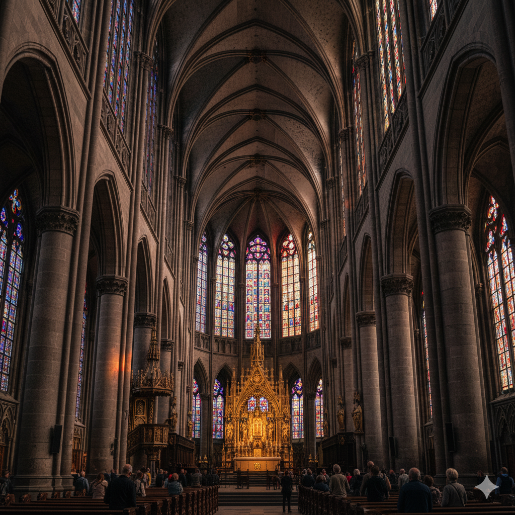 İç mekanı aydınlatan devasa vitray pencereler, göğe yükselen kemerleriyle birlikte ziyaretçiyi ilahi bir atmosferin içine alır. Yapının dış cephesini süsleyen ve yüksek duvarları destekleyen zarif payandalar, Gotik mühendisliğinin en akıllıca çözümlerinden biridir. Dış cephe ve iç mekanlarda, aziz heykellerinden grotesk gargoyllara kadar binlerce taş oyma ile süslü detaylar bulunur. Her bir detayın ayrı bir hikaye anlatır.