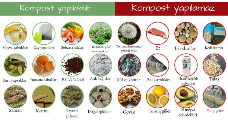 Kompost yapmak eğer yeriniz varsa gerçekten çok kolay. Yukarıdaki gördüğünüz liste size kompost kutunuza neleri atıp atamayacağınız konusunda yardımcı olabilir.