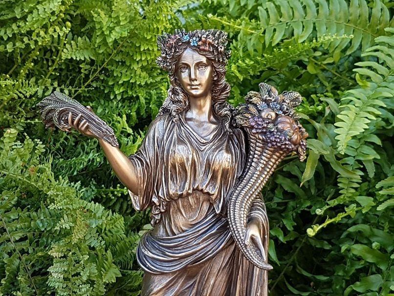 Hasat tanrıçası Demeter, genellikle bir elinde buğday başakları, diğer elinde ise bir boynuza doldurulmuş meyvelerle tasvir edilir.