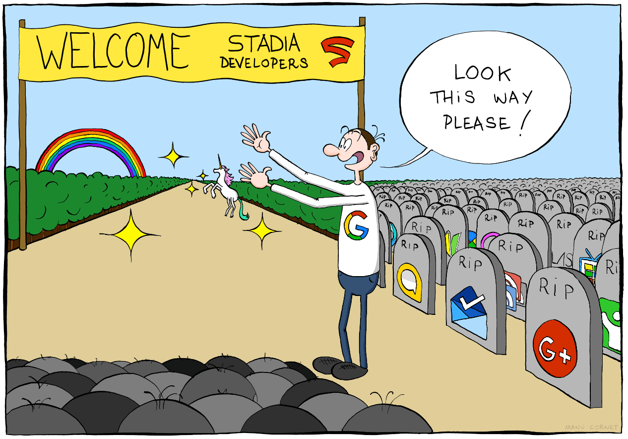 Stadia ne yazık ki Google'ın başarısız girişim mezarlığına giriş yaptı. Yurtdışında çokça geyiği yapılan Google şirketinin okadar çok başarısız girişimi var ki bunun için bir site yapılmış. Adını da Google Graveyard koymuşlar. Stadia konusuna gelecek olursak. Stadia platformu kullanıcılarından talep ettiği internet hızı ve bununla beraber oynamak istediğiniz çoğu oyunu satın almanızı gerektirdiği için oyuncular tarafından hoş karşılanmadı. Oyunları tabi ki satın alacağız diyebilirsiniz ancak burada demek istediğimiz, sizde zaten bulunan bir oyunu sırf Stadia üzerinde oynamak için tekrardan satın almanız gerekmesi. Bununla beraber ileride platformun kapatılması durumunda satın aldığınız bu oyunların sahipliğini korumanız için bir yol yok çünkü Stadia, Steam gibi dijital bir oyun pazarı değil. Tabi bu durumda açıldığı andan itibaren suyun içinde çırpınmak zorunda kalan Stadia birkaç yıldır kendisini kurtarmaya çalışıyordu. Ancak oyuncu sayıları gitgide azalmaya devam etti ve Google platforma oyun yapması için kurduğu stüdyolarını kapattı.