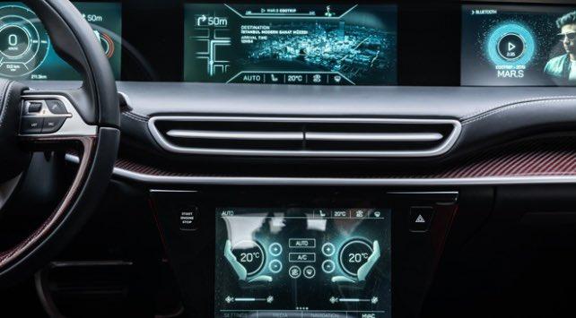 Aracın içerisinde bir çok teknoloji yer almaktadır. Aracın ilk dikkat ettiğimiz şeyi ise içerisinde büyük 4 tane ekran yer almasıdır. Araçta sürücü konforundan çok yolcu konforuna da önem verilmiştir bu sebepten ötürü ekranlardan biri yolcu tarafındadır daha önce bu özelliği ünlü süper spor araba olan Ferrari’de görmüştük ama Ferrari’de sadece devir ve km/s gösteriyordu bahsedilen ekran ve bu ekran opsiyon olarak satılıyordu. Yerli aracımızda bunun bir opsiyon olmadığını ve standart olarak araçta yer aldığını belirtmek isterim.
