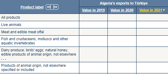 Cezayir'den ithal edilen ilk beş sıraya baktığımızda; (1)Canlı hayvanlar, (2)Et ve yenilen sakatat, (3)Balık ve kabuklular, yumuşakçalar ve diğer suda yaşayan omurgasızlar, (4)Süt ürünleri; kuş yumurtaları; doğal bal; Hayvansal kökenli yenilebilir ürünler, başka yerde sınıflandırılmamış, (5)Hayvansal kökenli ürünler, başka yerde belirtilmeyen veya yer almayan ürünleri görüyoruz.