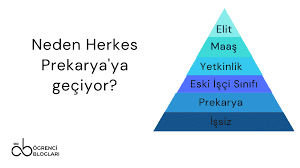 Prekaryanın sözcük anlamına baktığımız zaman güvencesiz sıfatı ile proletarya isminin birleşiminden geldiği görülür. Fakat prekarya işçi sınıfı ya da proletaryanın bir parçası değildir. Prekaryaya dahil olanlar orta sınıf da değildirler. Bu sınıf kısa dönemde düşük ücretli işlerde çalışmaktadır. Emeklerinin karşılığını alamayan bir sınıftan bahsediyoruz. Emeklerinin karşılığını alamayan bu sınıfın küreselleşmeyle beraber tehlikeli hale gelmesi doğaldır. Prekarya henüz oluşum sürecindeki bir sınıftır. Prekarya sınıfsal özellikleri sergiler. Parçalı statüye sahiptir. Geçici olarak çalışmak prekaryanın temel bir unsurudur. Prekaryanın başka bir önemli özelliği de gelirlerin güvence altında olmamasıdır. Prekarya içerisinde olan kişilerde iş temelli kimlik bulunmaz. Prekaryanın tarihsel öncülleri banausoi denilen toplumsal bir gruptur. Prekarya homojen bir yapıya sahip değildir. Çağrı merkezinde çalışanlar da prekaryaya dahil edilmişlerdir. Stajyerlikte örnek olarak verilebilir. Çünkü stajyerlerde kısa dönemde düşük ücretle çalıştırılmaktadır ve emeklerinin karşılığını alamazlar.
