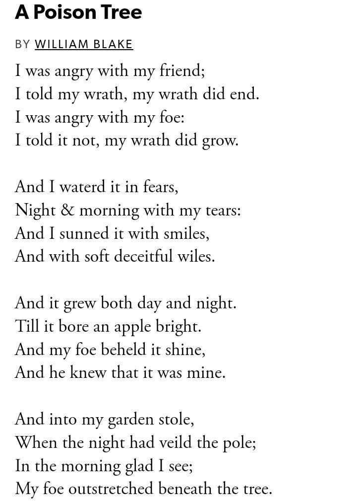 "A Poison Tree" by William Blake