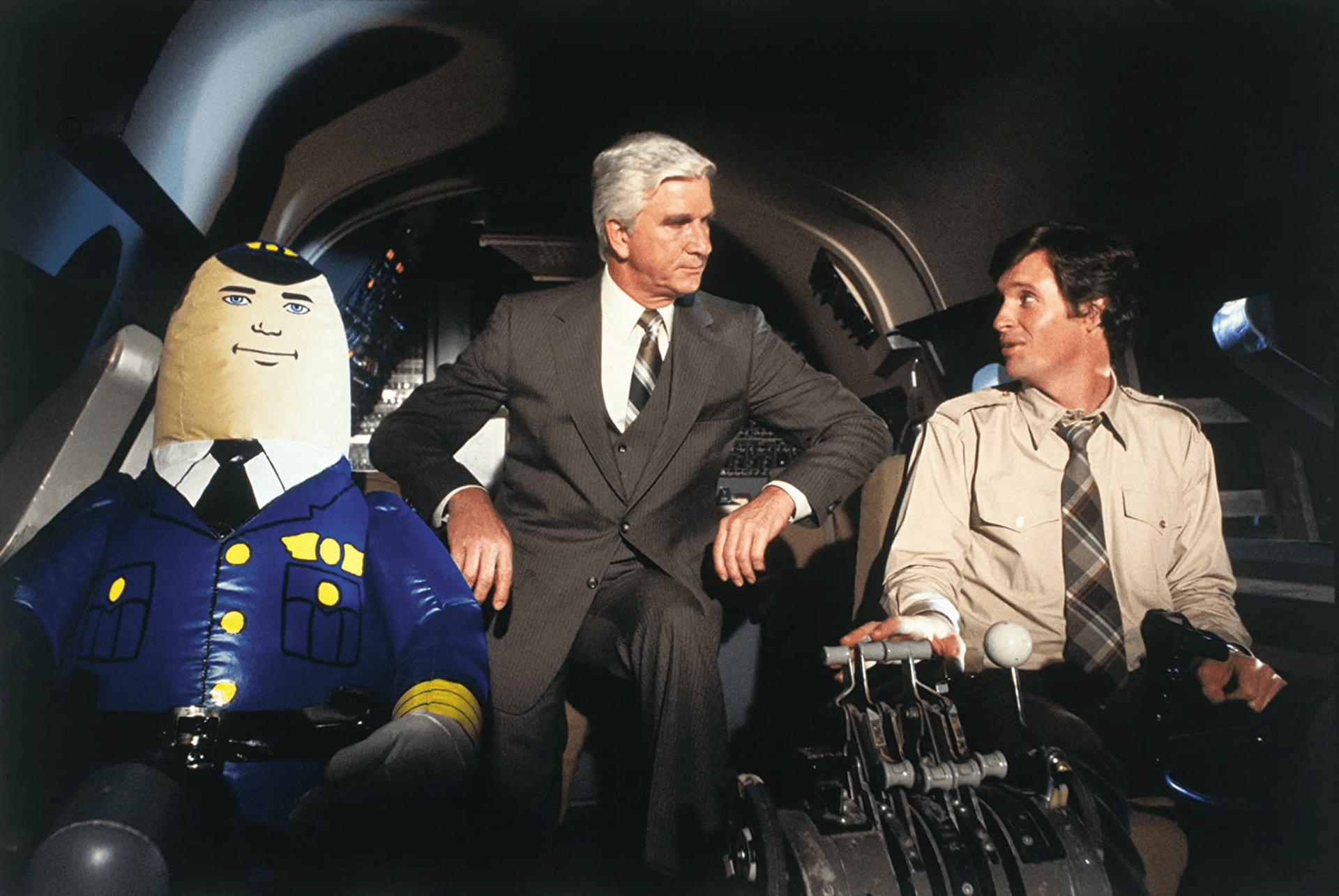 Airplane!'in sahip olduğu ve modern komedilerde genellikle eksik olan en yaygın unsur, görsel mizahı ustaca kullanmasıdır. Edgar Wright gibi çağdaş yönetmenler Hot Fuzz, Shaun of the Dead ve Scott Pilgrim vs. the World gibi filmlerde göz alıcı komedi yaratmak için zekice kurgu teknikleri kullanırken, Airplane! daha basit bir espri formu kullanıyordu. Bunun en iyi örneği ise bir uçuş görevlisinin kontrolden çıkan uçağı dengelemek için şişme bir pilot kullandığı otomatik pilot sahnesi. Bu şişme pilot sadece günü kurtarmakla kalmaz, daha sonra sönerek daha da komik bir görsel şakaya yol açıyor.
