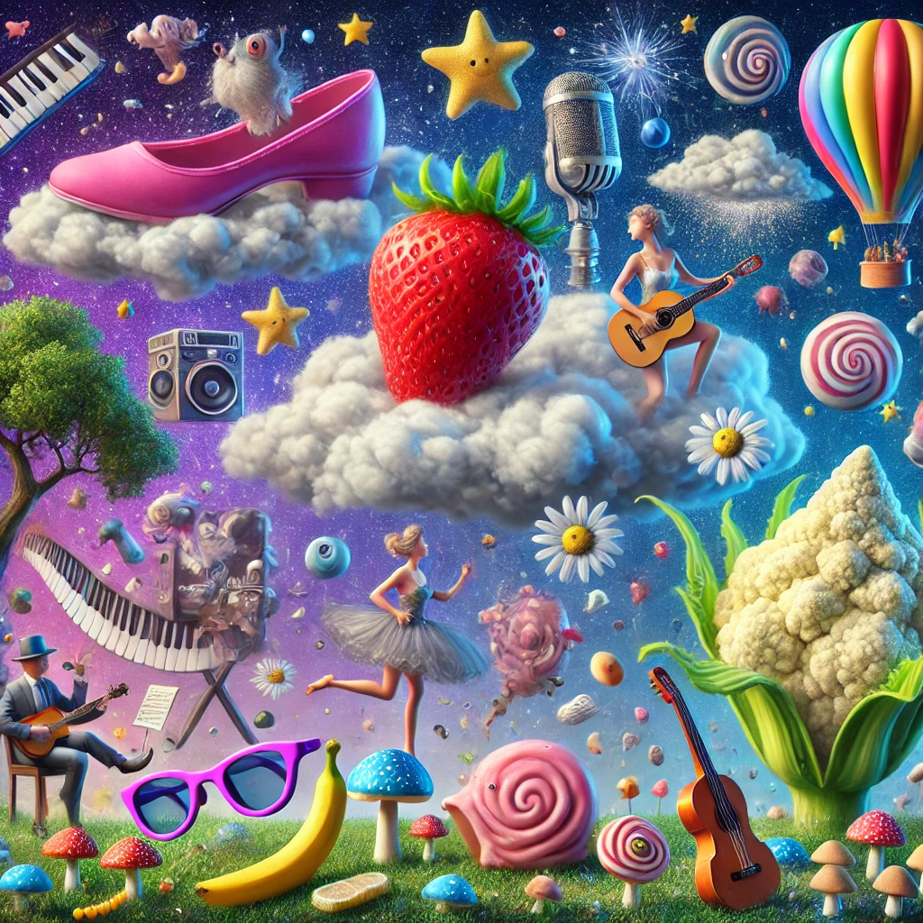 Ayakkabılarım uçup gidiyor gökte, mavi mantarlarla kaplı bir ormanda, sinekler orkestrayı yönetiyor, şapkalar bir arada selamlıyor.
