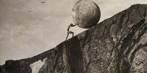 Sisifos, Yunan Mitolojisinde sonsuza kadar büyük bir kayayı bir tepenin en yüksek noktasına kadar yuvarlamaya mahkûm edilmiş bir kraldır. Her seferinde tam tepenin doruğuna ulaştığında kaya elinden kayar ve Sisifos her şeye yeniden başlamak zorunda kalır. Bu ceza sonsuza kadar sürecektir.
