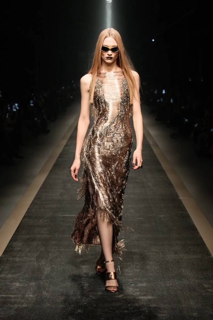 Öte yandan, Versace’nin kendine has bir çizgisi var. Çünkü marka yıllardır “yüksek sesli moda”nın öncü temsilcilerinden biri. Cesur çizgilerin, dramatik silüetlerin ve pop kültürüyle yakın temasın markası.
