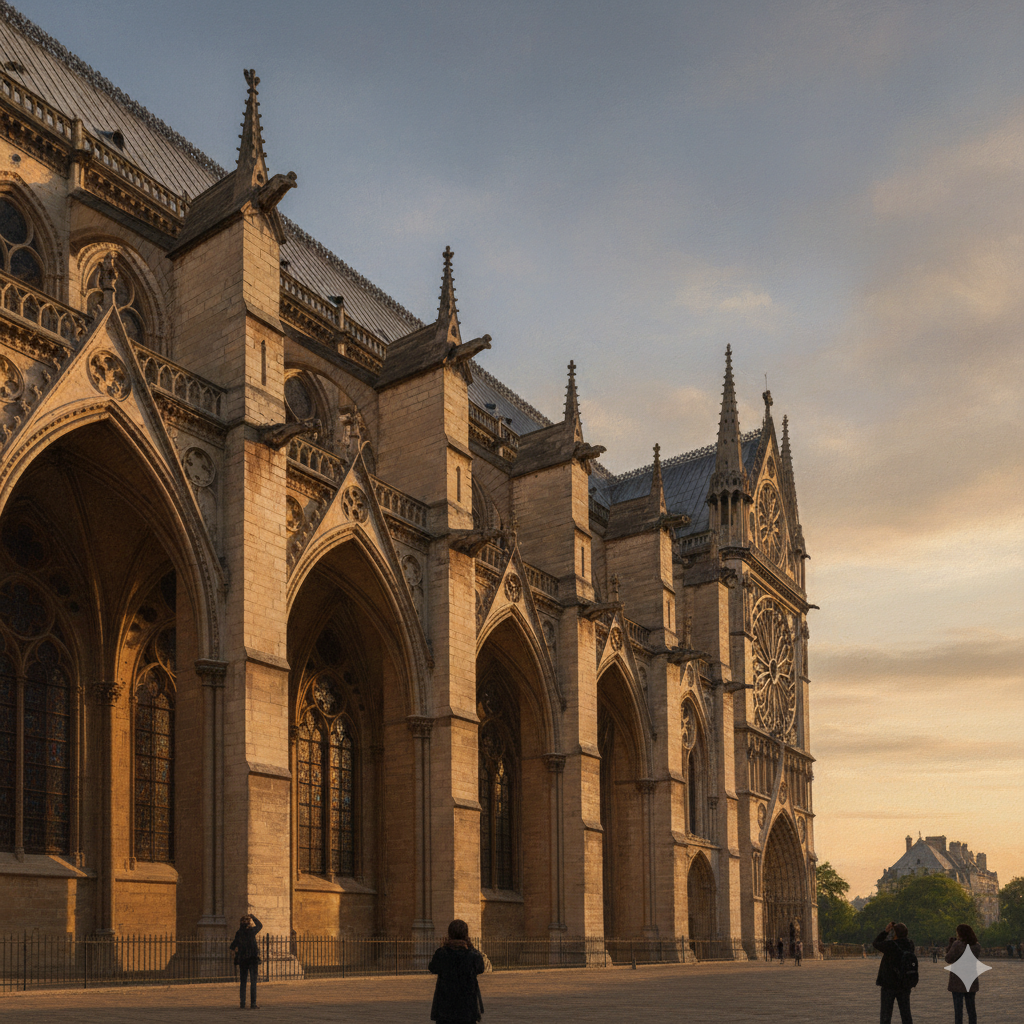İç mekanı aydınlatan devasa vitray pencereler, göğe yükselen kemerleriyle birlikte ziyaretçiyi ilahi bir atmosferin içine alır. Yapının dış cephesini süsleyen ve yüksek duvarları destekleyen zarif payandalar, Gotik mühendisliğinin en akıllıca çözümlerinden biridir. Dış cephe ve iç mekanlarda, aziz heykellerinden grotesk gargoyllara kadar binlerce taş oyma ile süslü detaylar bulunur. Her bir detayın ayrı bir hikaye anlatır.